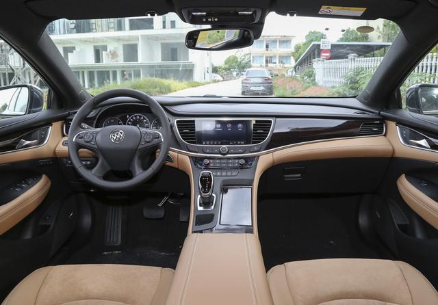 内饰方面,新车的内饰设计还是偏商务类型,整体显得较为沉稳、大气。比如内饰采用了大面积的木纹饰板,银色哑光饰条等搭配。同时像中控大屏,电子换挡杆等也有体现。